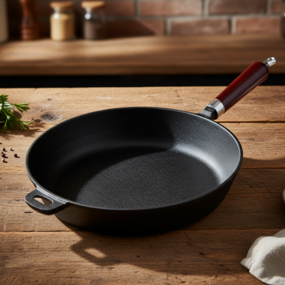 Une poêle en fonte bien culottée devient naturellement antiadhésive et permet une cuisson homogène sans accrocher.