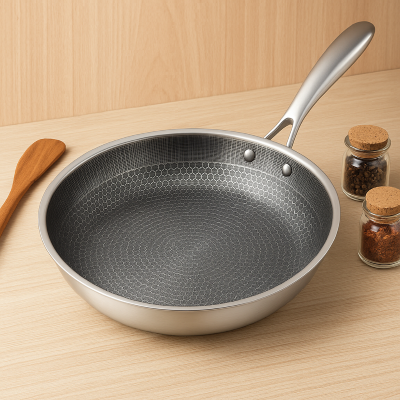 Découvrez la poêle inox nid d’abeille, conçue pour une cuisson saine et intuitive. Sa surface en relief forme un motif hexagonal qui permet aux aliments de glisser naturellement, sans revêtement chimique.